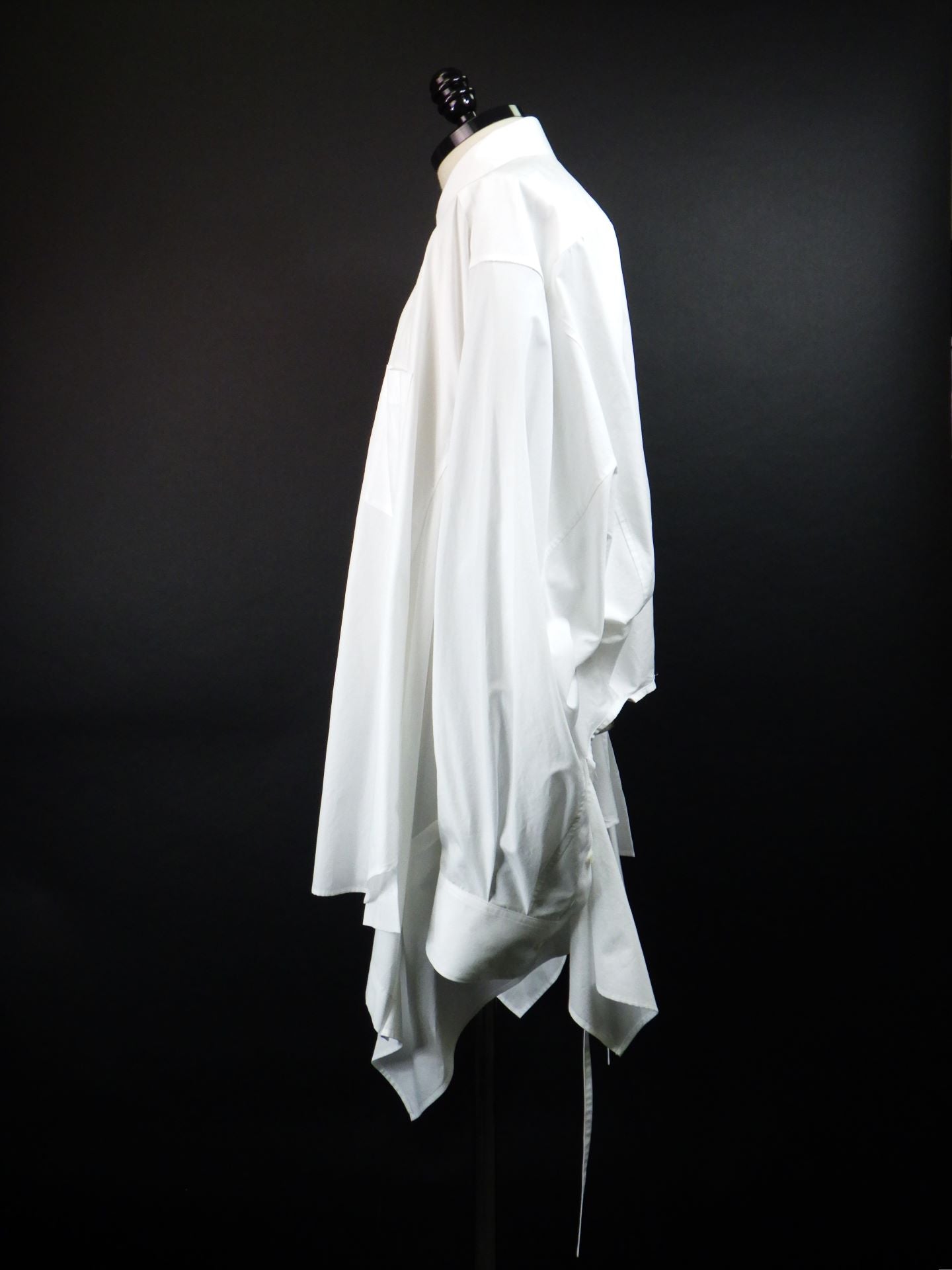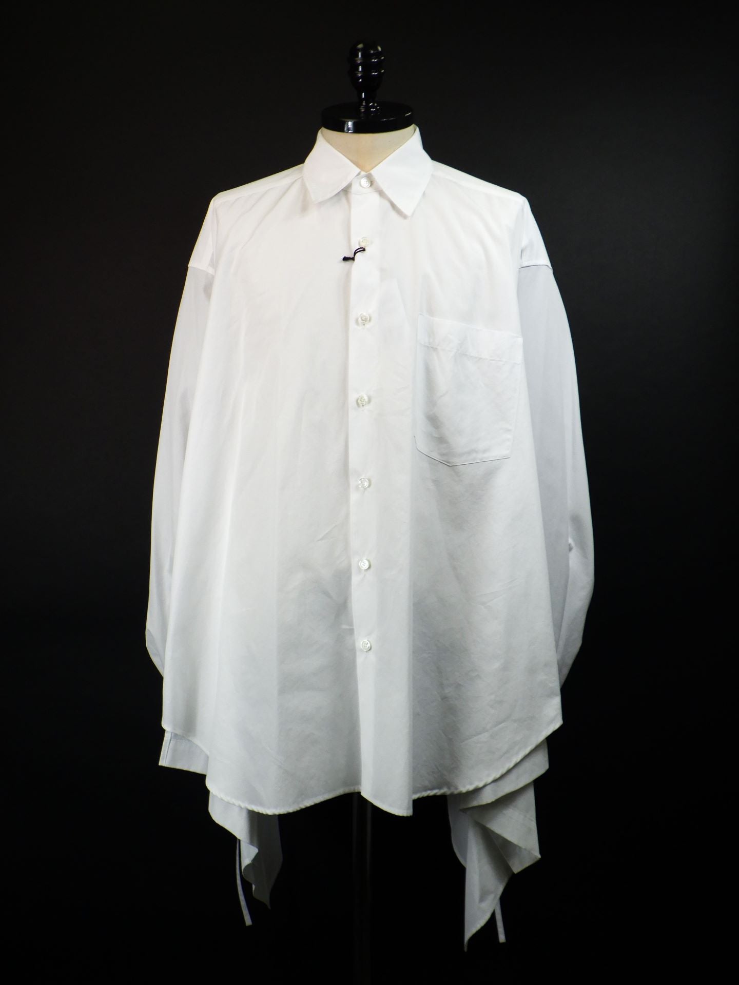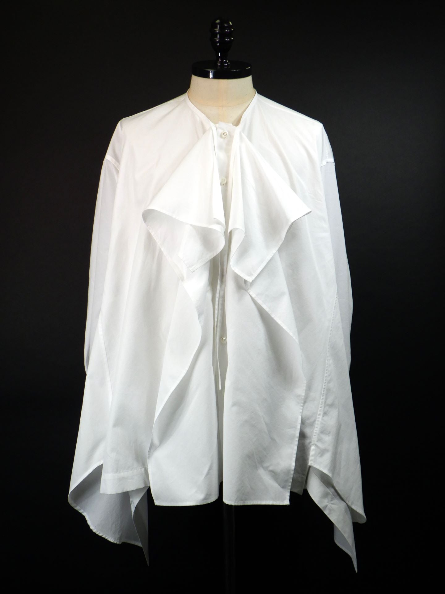 「ヒップ丈のレギュラーカラーシャツ」↔「腰丈のラッフルシャツ」