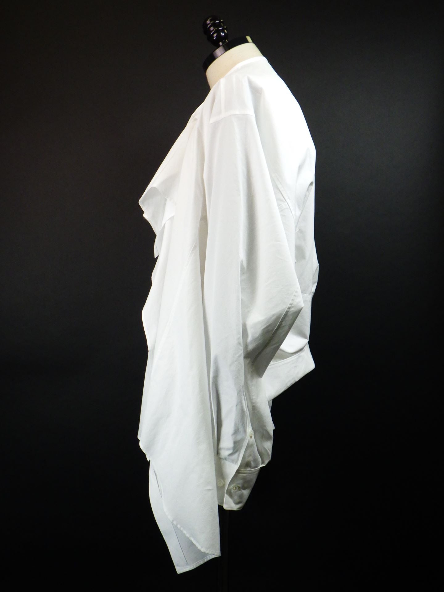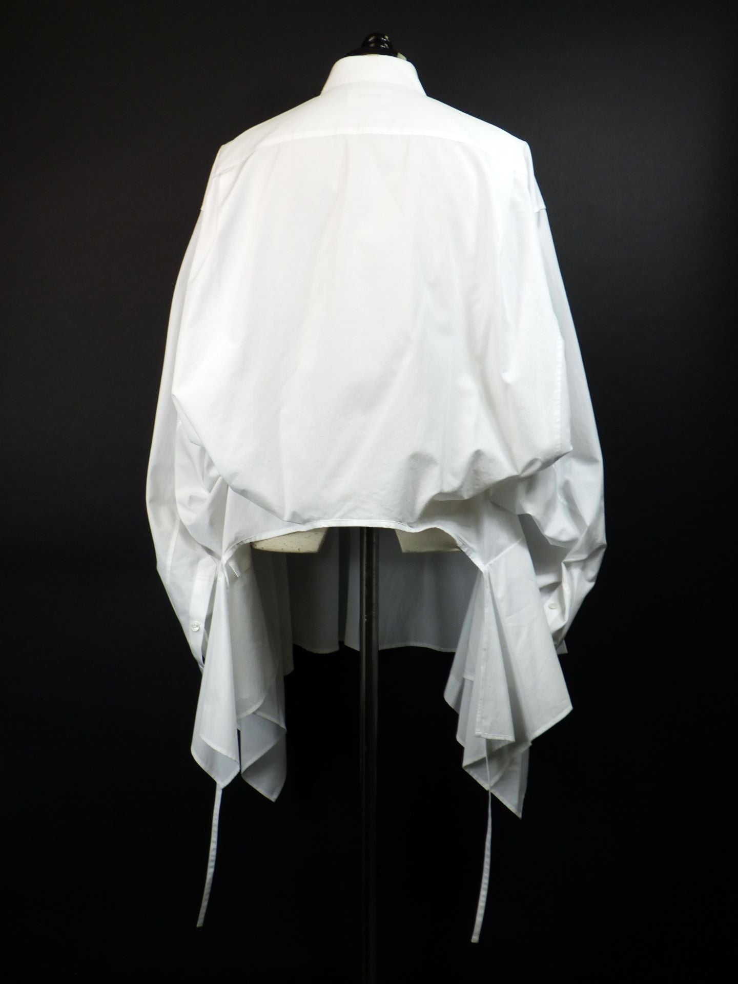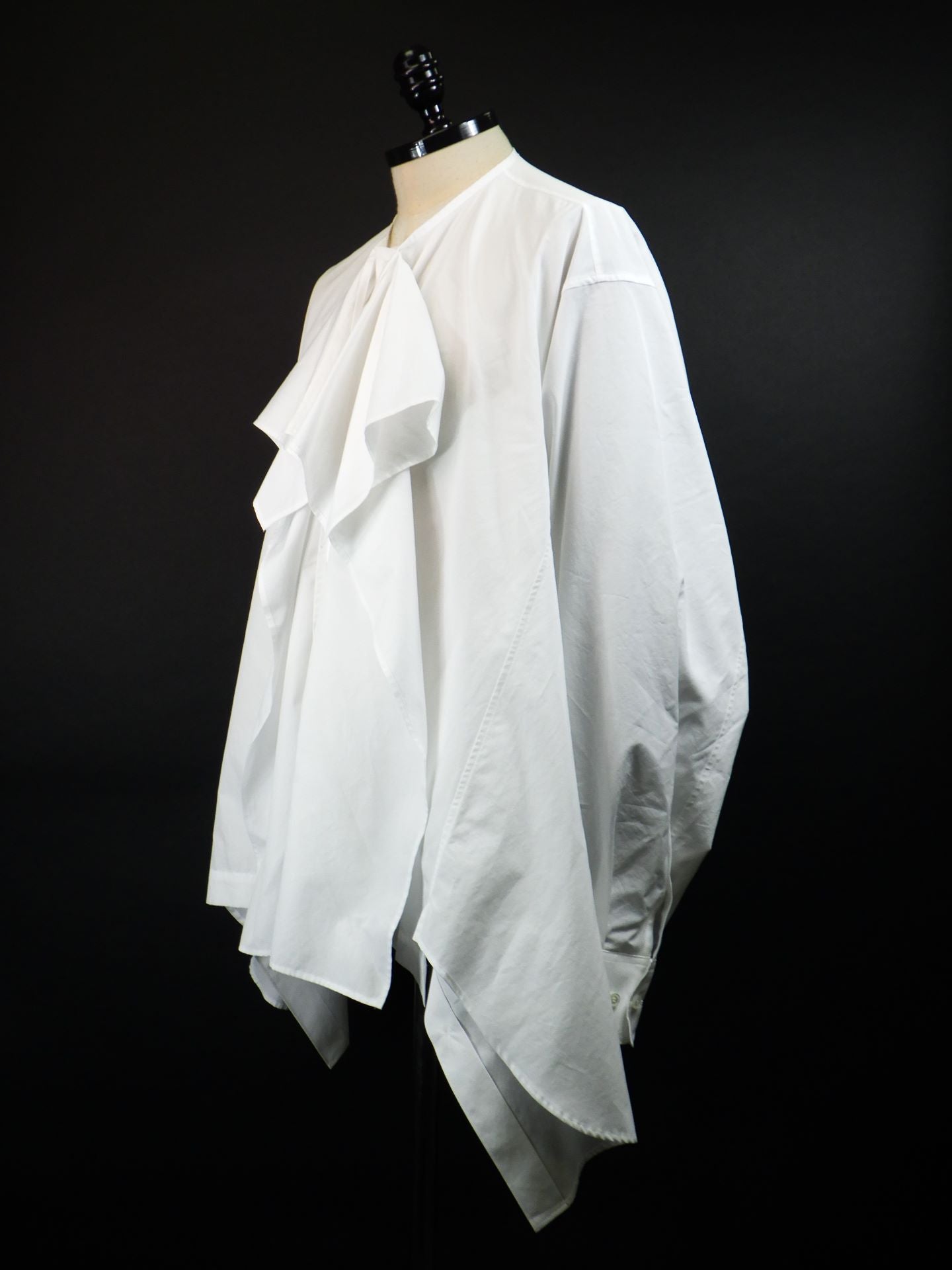 「ヒップ丈のレギュラーカラーシャツ」↔「腰丈のラッフルシャツ」