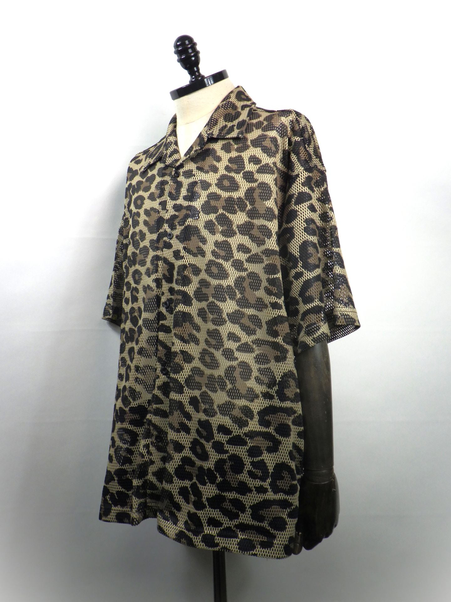 STUD MUFFIN レオパードメッシュ スマイリーパッチオーバーサイズシャツ 614-01148